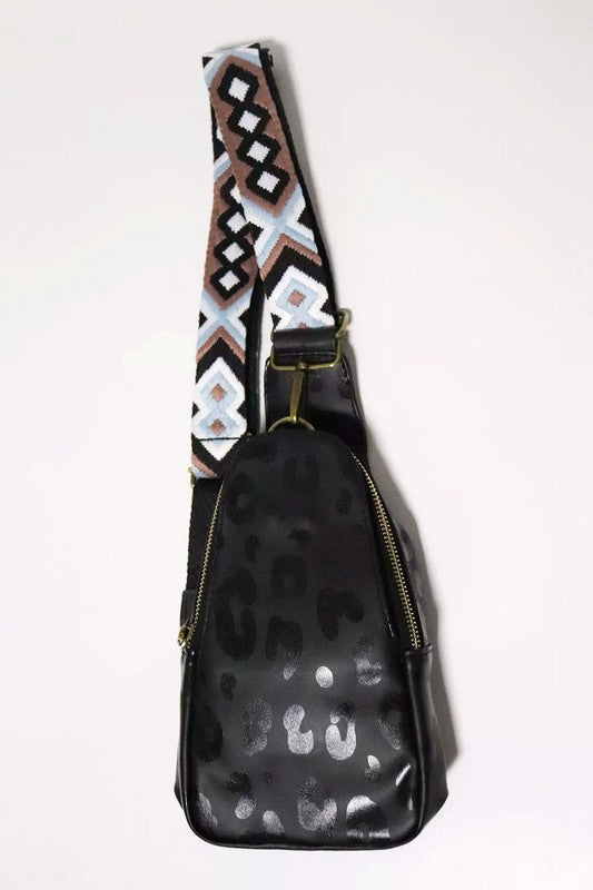 Aztec Strap Leopard/Cow Print Crossbody Sling Bag