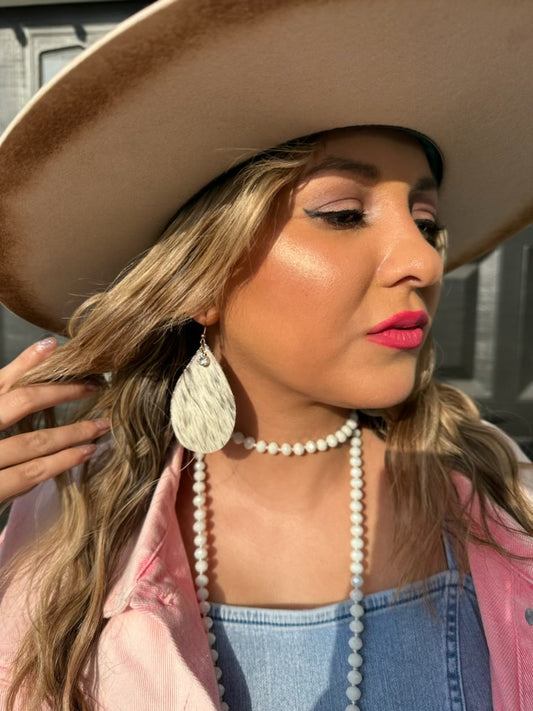 Howdy Darlin’ Cream Cowhide Teardrop Earrings
