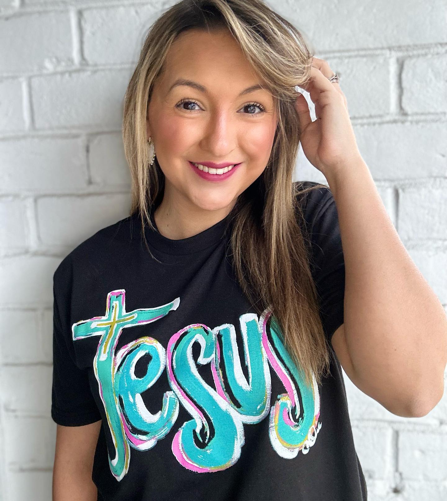 Shown on a unisex solid black Bella Canvas crew t-shirt.
